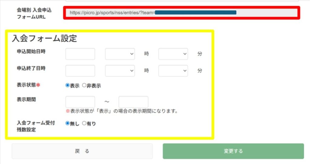 クラス編集の下部に「会場別 入会申込フォームURL」が発行されています。こちらをコピーしてご活用ください。
