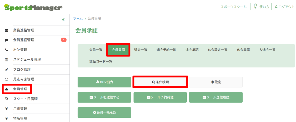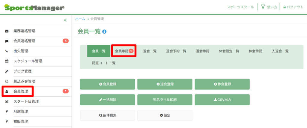 会員管理の「会員承認」を押してください。