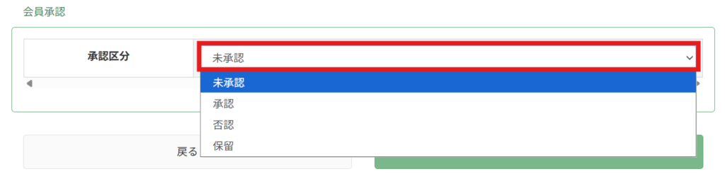 ※定員がいっぱいの場合などは「否認」を、入会が確定しない場合などは「保留」を選択してください。