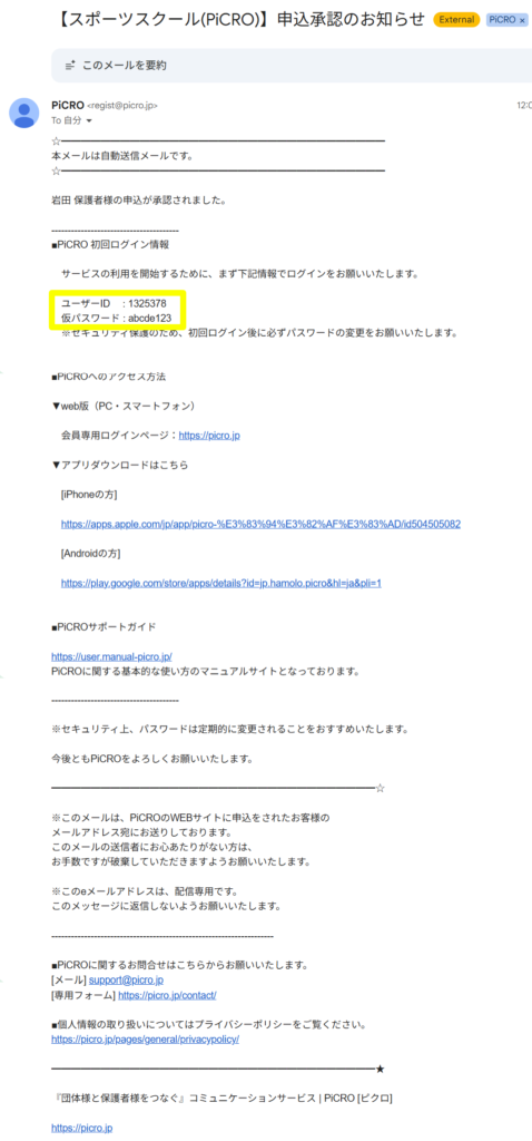 会員様にはログインIDとパスワードを使って、PiCROサイト(https://picro.jp/)またはPiCROアプリから初回ログインを行ってもらうようお伝えください。