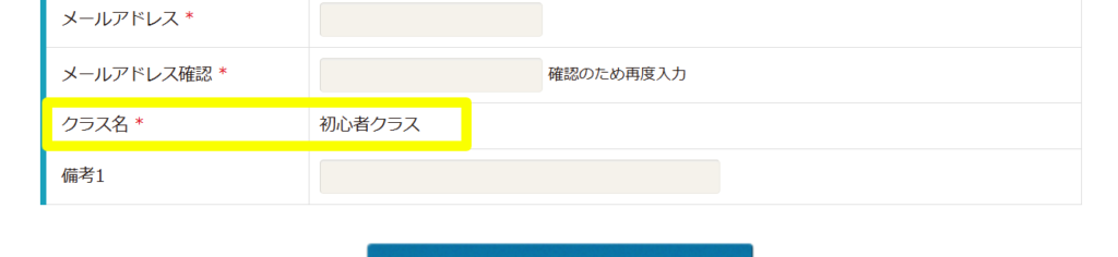 上記のリンクから申込フォームにアクセスすると、クラス名が固定で表示されていることがわかります。