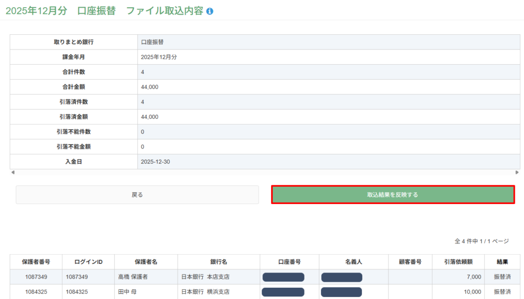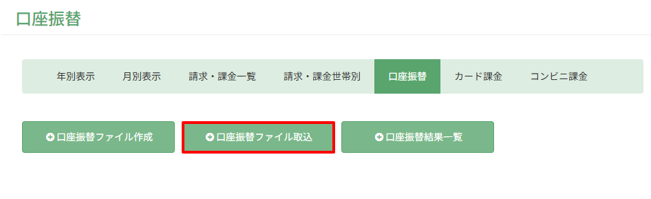 対象の会員に紐づいている売上(月謝など)が含まれる口座振替結果ファイルを取り込みます。