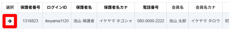 紐づけ先の会員が表示されたら、選択「→」ボタンを押します。